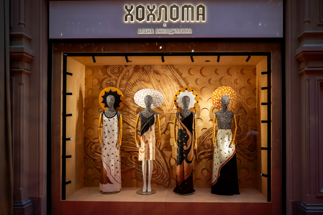 На первой линии ГУМ начал работу уникальный салон, воплощающий творческий диалог между домом моды Alena Akhmadullina и легендарным народным промыслом «Хохлома».